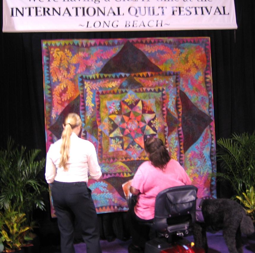 Well I did take pictures of the Long beach International quilt show and it was interesting but my dumb camera acted up and I only caught pics arriving and leaving. I am so bummed but you will just have to use your imagination this time. Sorry! My favorite exhibit was the Baltimore quilts which allowed no photo taking .There was a lot of art quilts from all over the world and lots of interesting quilts that were beautiful but I was disappointed by the lack of traditional quilts.So as I downloaded my pictures there was a gasp Oh No a blank bunch of pictures! I am not sure what happened I kept putting the camera in my bag and so clearly that was not a good idea. I think the gremlin in my camera thought the same way about the lack of Traditional quilts and acted up. My girlfriend told me Long Beach is known for having lots of Art Quilts.