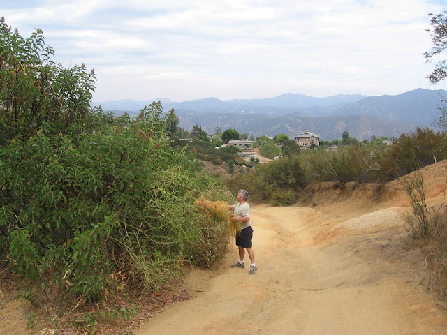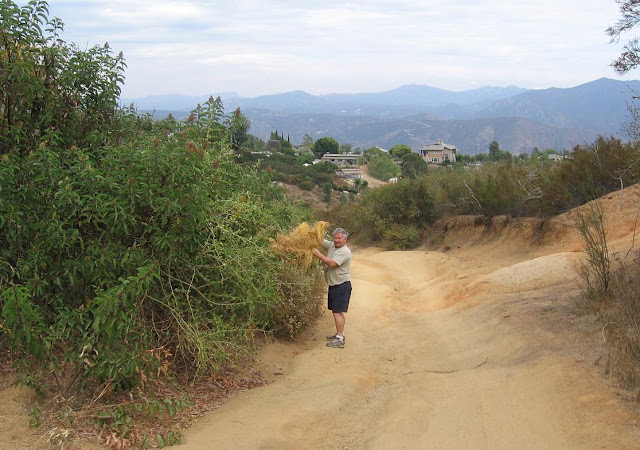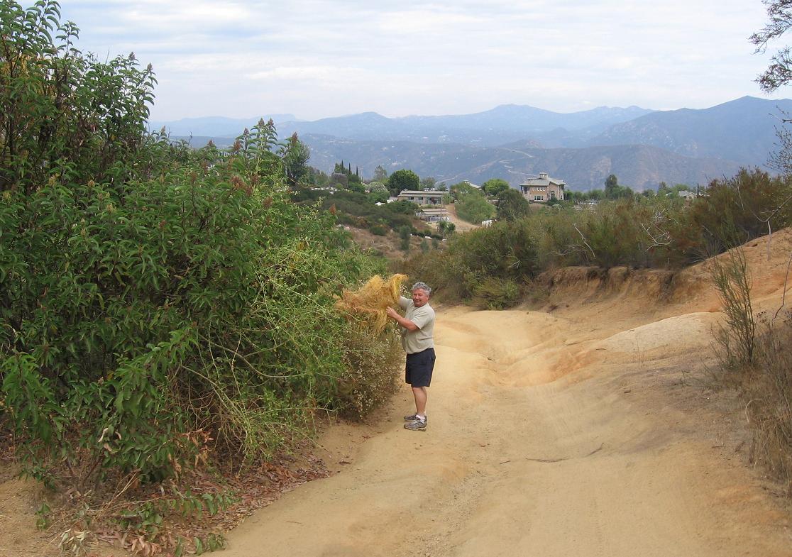 Maulie and I are looking at each other. I am thinking to myself maybe he needs to get a hearing test! I also thought what a dumb idea to let him go ahead of me Finally after the fourth time yelling he yells back. A few minutes later I see coming up the trail. a huge bag of Dodder. Jack has a look on his face like what’s the big deal. Men!