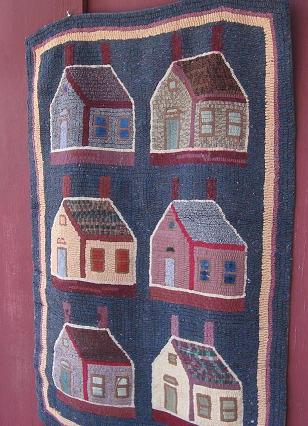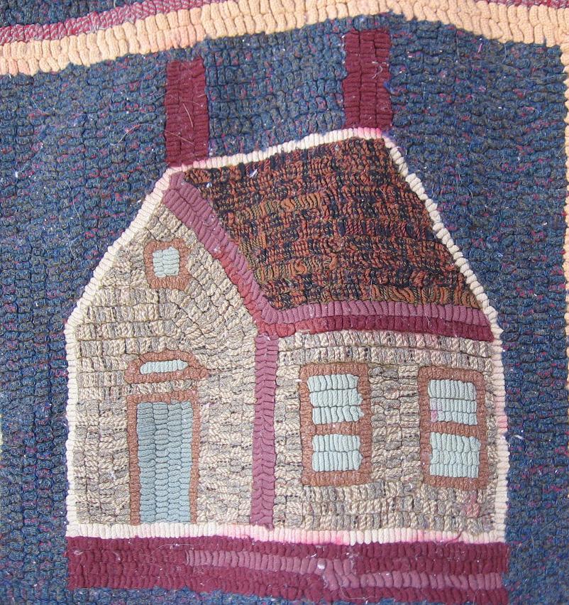 Bev and I had Janet hang it up on the siding of her home so I could take a picture of what one person thinks is just an old rug. I think Janet is starting to see it in a new light. Sometimes having someone else look at what we hooked in the past makes us realize we didn’t do such a bad job!