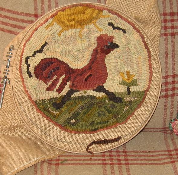 I was looking at rug hooking sites and looking for antique looking rugs when I went on woolly fox site and saw the rugs of Magdalena Briner The roosters were my favorites! Magdelena Briner rugs