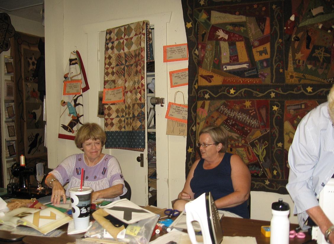 Donna made us Hobo stew it was great! and so between cutting, sewing and working away the evening went super fast. Apparently there are stories in the book about Hobo’s so we listened and sewed away. I am glad I got out of the house tonight and you can see by the pictures we were all busy!