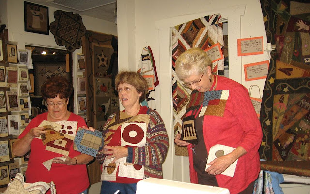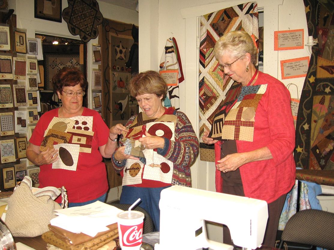 Hobo quilt class was as usual full of nice ladies and lots of laughter. Our teacher is so sweet and makes our class a fun enjoyable evening. The storm arrived but it was well worth driving in the rain. I have never had as much fun in quilt,rug hooking or doll classes as the Country Loft. The added bonus of a class is the knowledge you can get from your fellow classmates.There is always an interesting quilt or two that someone brings in to share with the group.This months class we had a demonstration on applique.