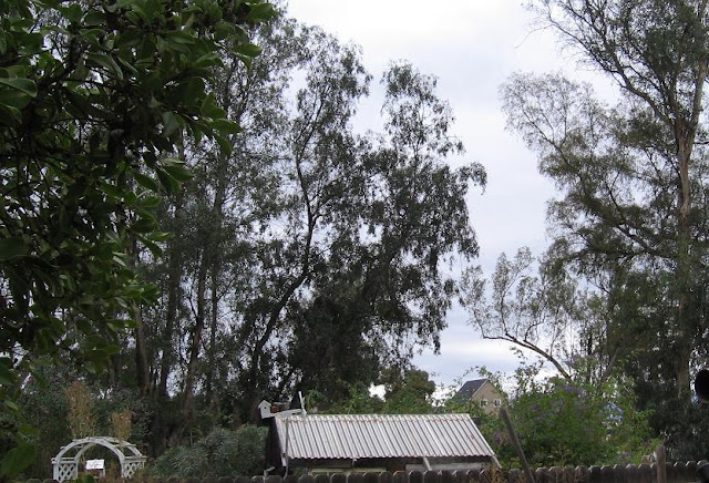 I love this time of year . Were going to have a winter storm. Of course I have my Hobo quilt class tonight and I will be sure and take pictures. Maulie and Morris and I went into the back yard to try to take a picture of the cloudy sky. The photo really doesn’t show the gathering clouds. Poor Maulie got a sticker that went into her paw so I had to pull it out and now she is being really quiet. Morris my Big boy he followed me as I took pictures around the back yard.